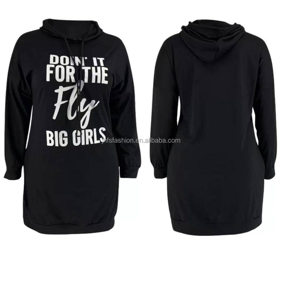 J & H abito con cappuccio con lettere alla moda stampato taglie forti