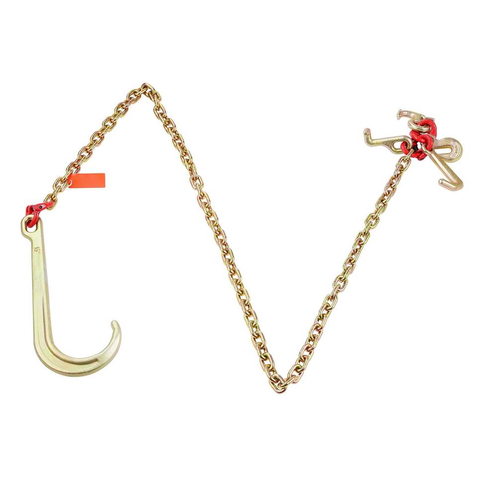 Catena a Gancio a J 5/16'' x 6 G80, Catena di Traino con Gambo Lungo 15'' e Carico di Lavoro Sicuro di 5400 Libbre, Gancio a Grappolo RTJ