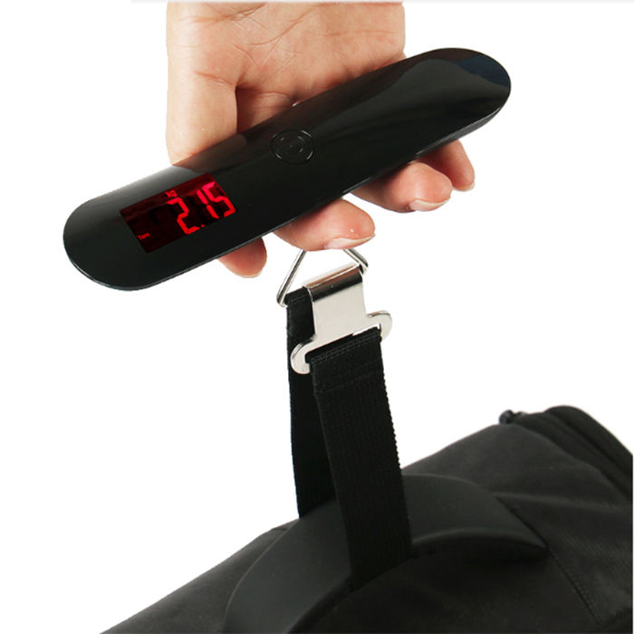 J&R Black Plastic Compact Small Handheld Weight Scale Kilogram Pound Weighing Luggage Scale Digital