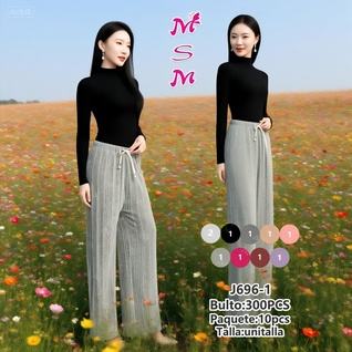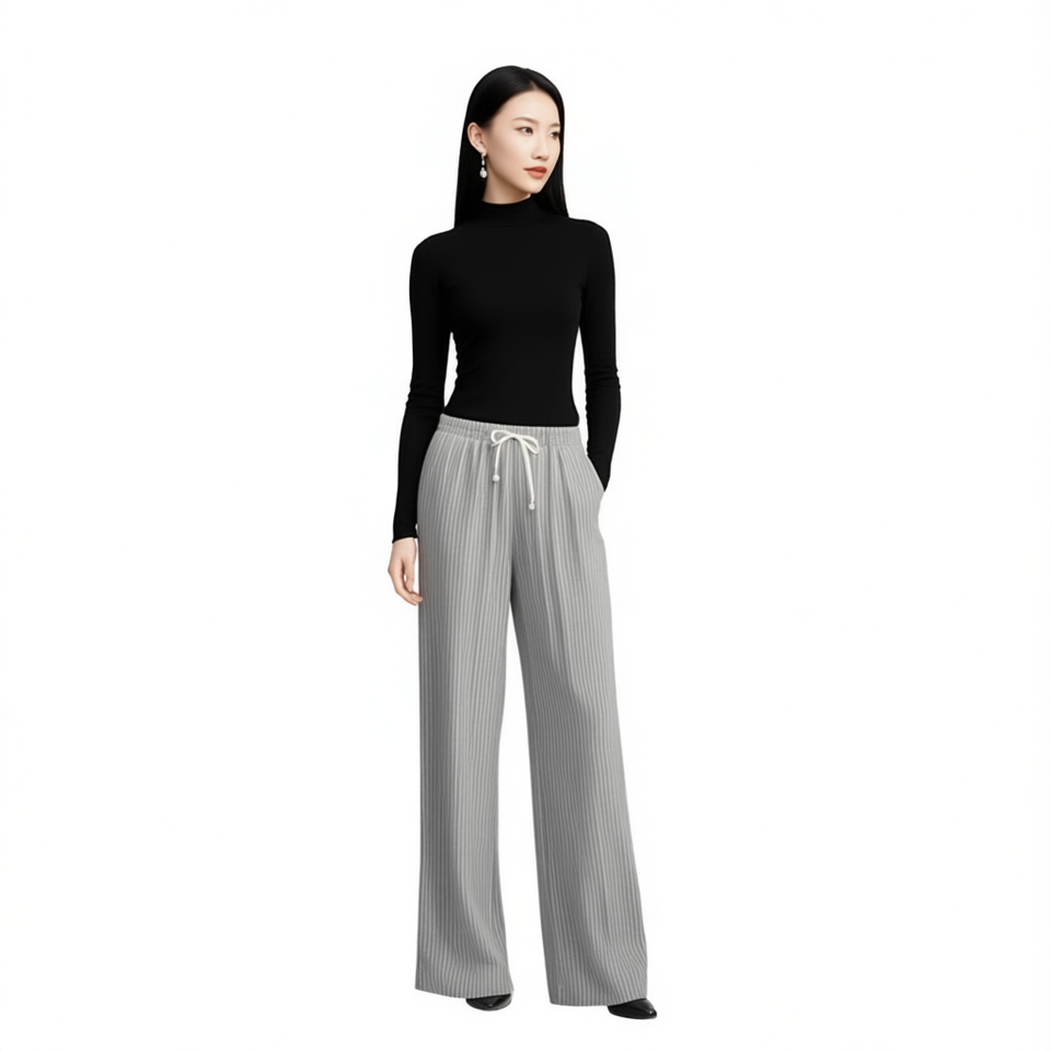 J696-1 Women's Knitted Wide Leg Pants High Waist Striped Drawstring Loose Fit Full Length Casual Autumn Wear