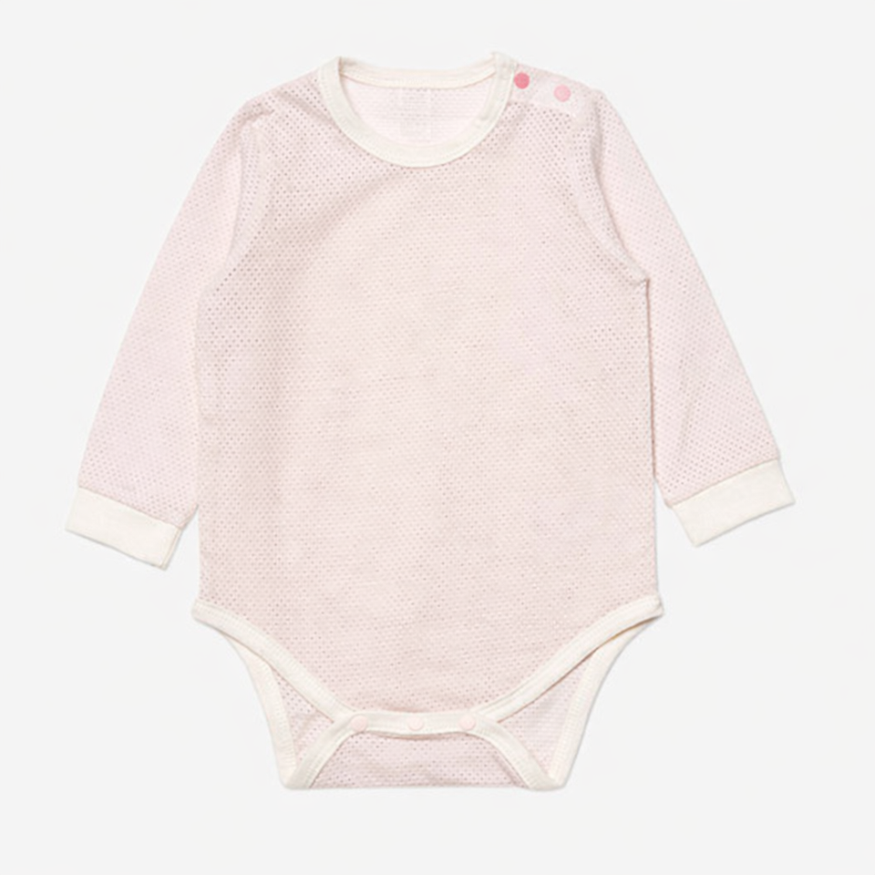 JALBEBE Eco-Friendly Summer Unisex Long Sleeve Woven 100% Cotton Baby Bodysuit with Air Mesh Infant Shoulder Buttons Wholesale