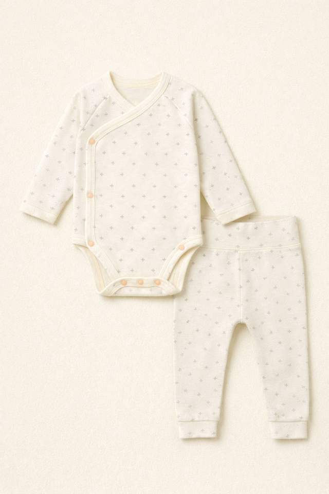 JALBEBE Set Long Sleeve Romper Leggings Woven Soft Cotton Modal Spandex Eco-Friendly Washable Button Closure All Season Baby