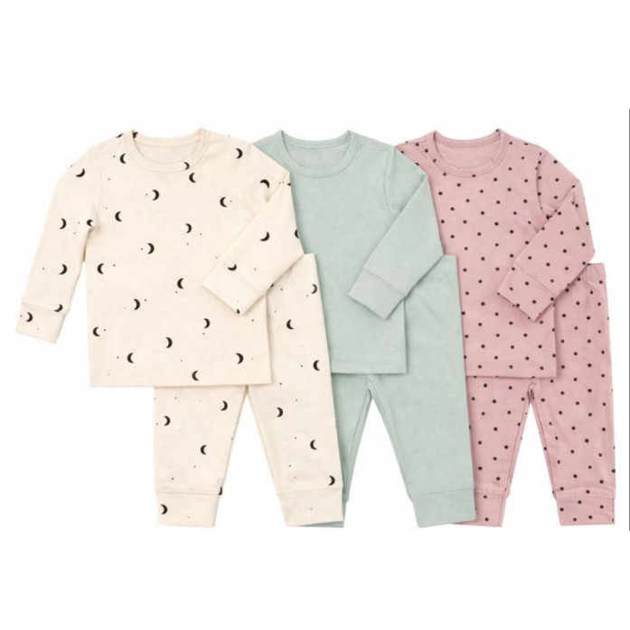 JALBEBE Set pigiama unisex per neonati 2 pezzi, manica lunga, morbido misto cotone, modal ed elastan, per tutte le stagioni, top e pantaloni, tinta unita, abbigliamento per la casa