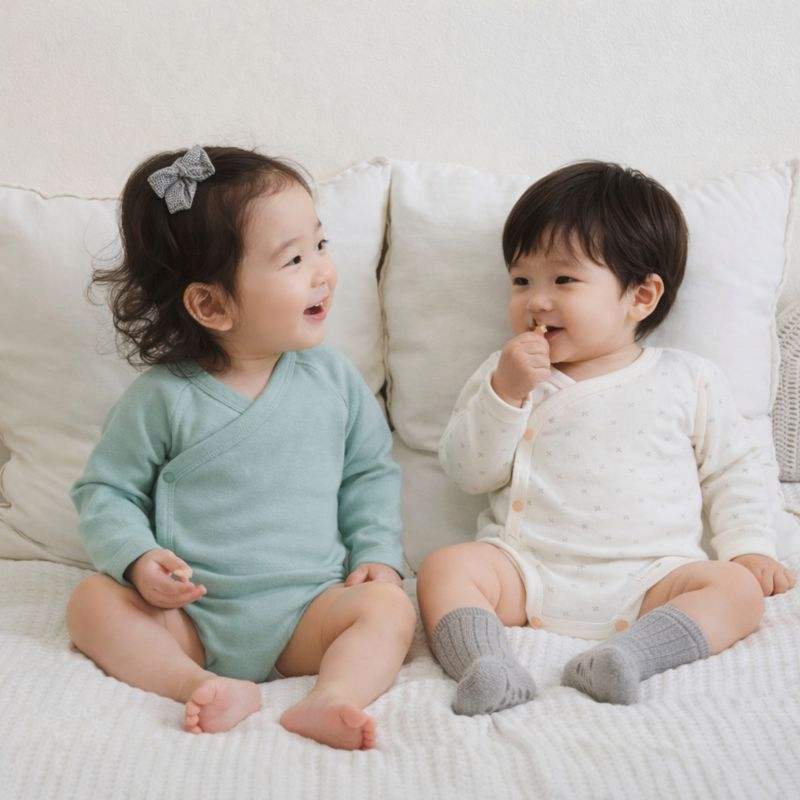 JALBEBE Wrap Bodysuit Woven Spandex Cotton Eco-Friendly Washable Autumn Unisex Infant Romper Newborn Long Sleeve Open Front