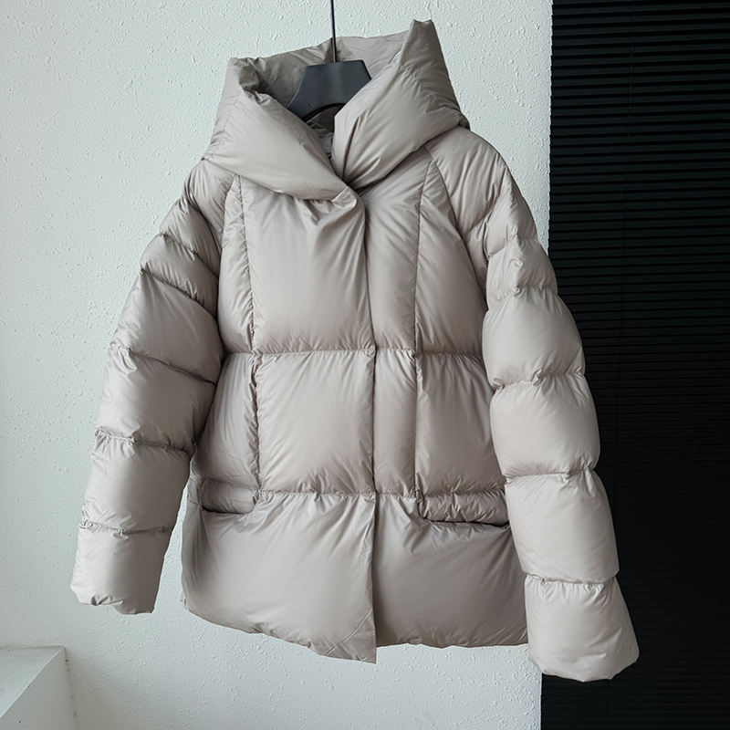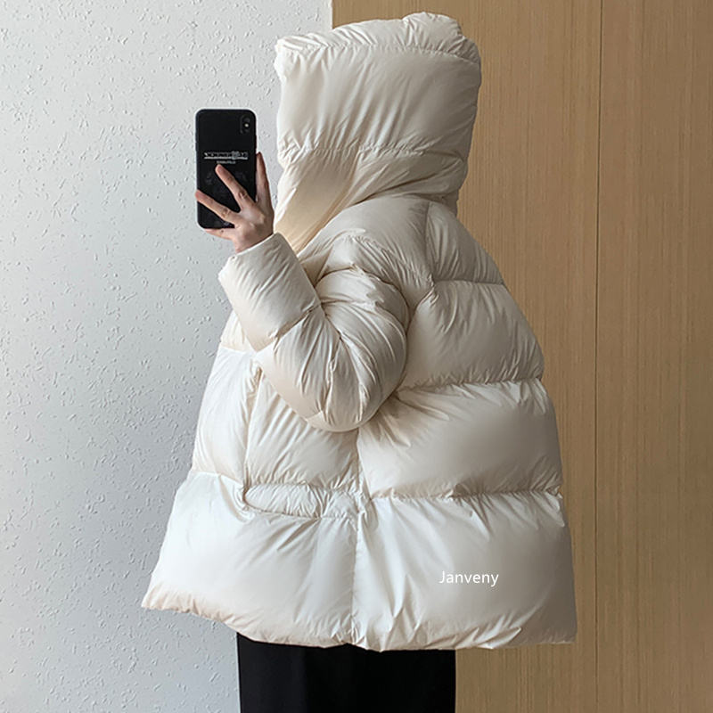 JANVENY 2025 Nuovo Piumino Invernale Ultra Leggero 90% Piuma d'Oca Bianca da Donna, Giacca Corta Imbottita con Cappuccio Tinta Unita, Abbigliamento Caldo per il Pendolarismo