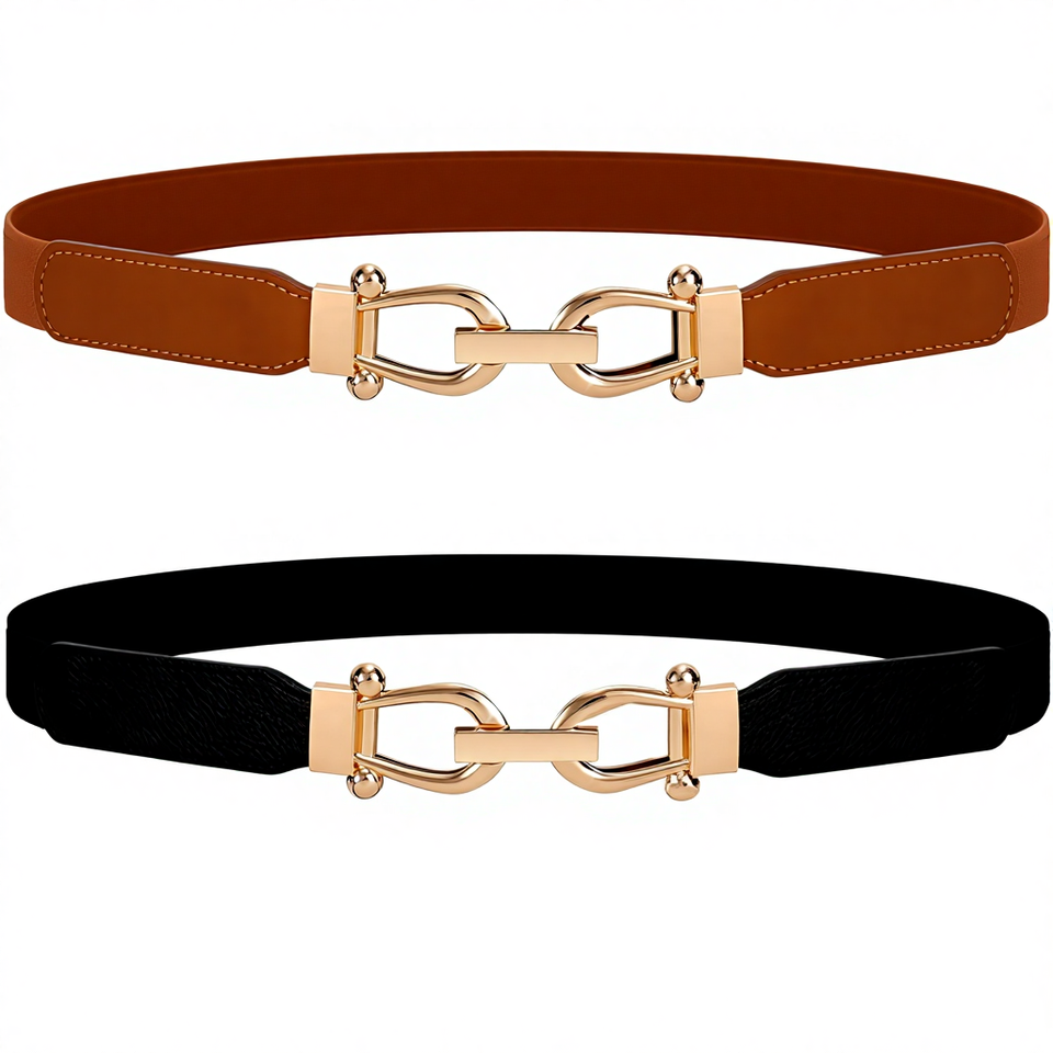 JASGOOD Women's Cow Hide Alloy Buckle Stretchy Elastic Retro Skinny Waist Belt