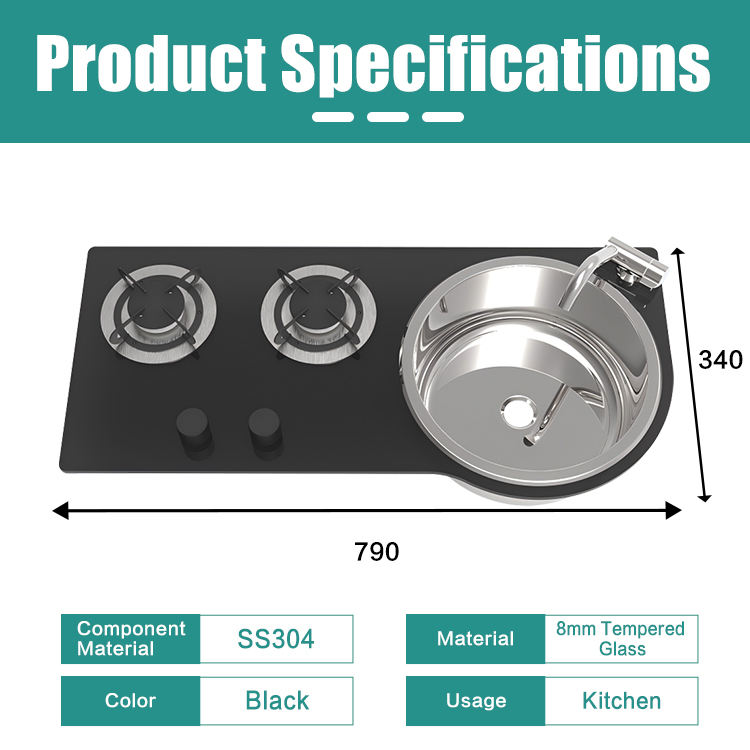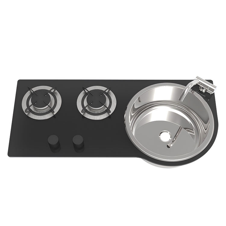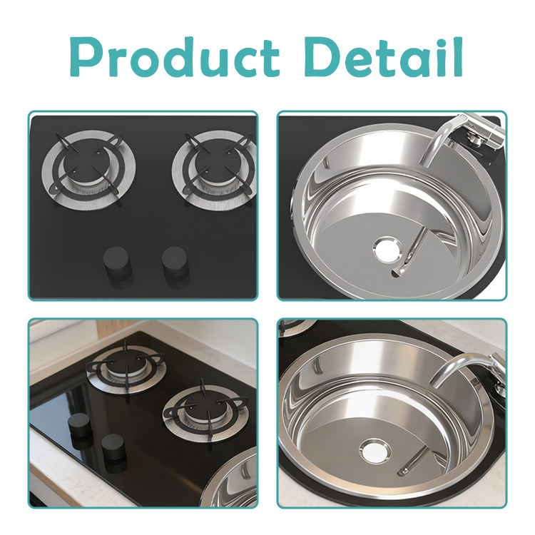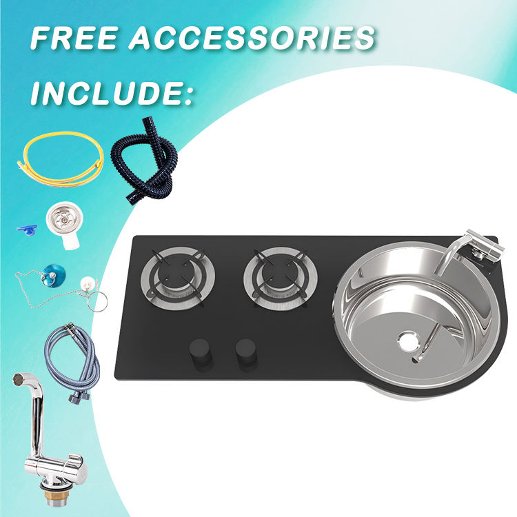 Fornello a Gas Compatto JDA a 2 Fuochi per Camper con Lavello Curvo Integrato, Cucina Mobile Tutto-in-Uno con Accessori Gratuiti per Piccoli Camper e Roulotte