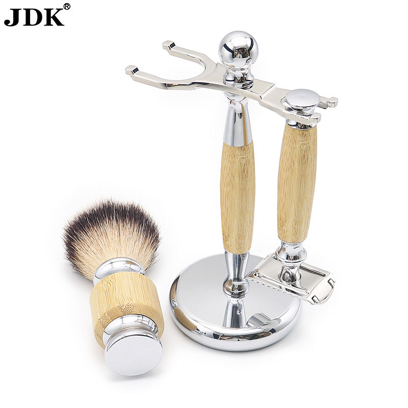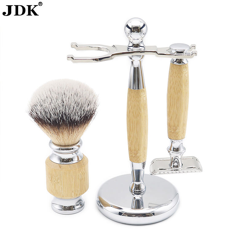 JDK New Design 3cp Set di pennelli da barba manico in bambù Set di rasoio da barbiere per la cura della barba
