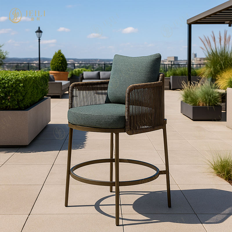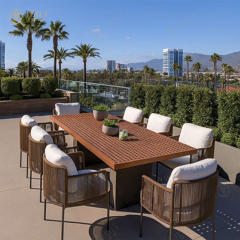 JEILI Arredamento Moderno per Ristoranti all'Aperto, Tavolo in Teak e Sedia Intrecciata in Corda per Terrazze e Progetti Alberghieri