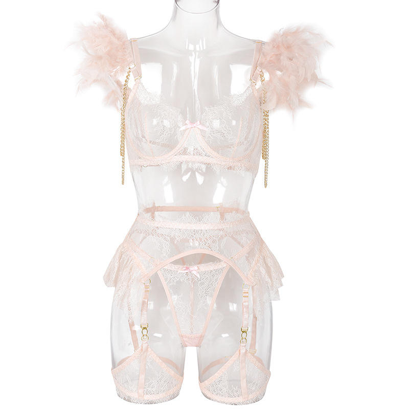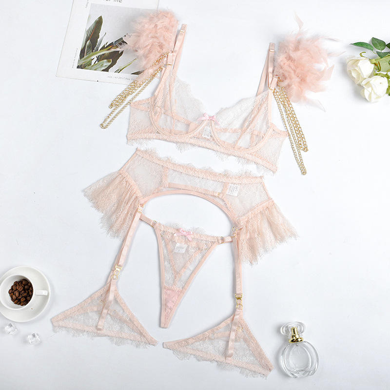JENGS Hot trasparente Nude vede attraverso tre pezzi Lingerie Sexy erotico rosa Intimo Donna Sexy ragazze In Lingerie