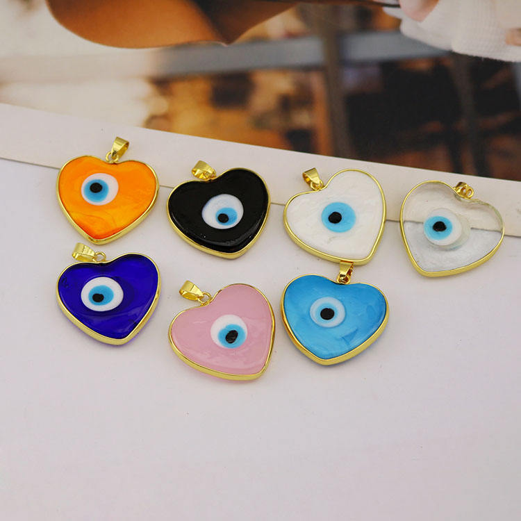 JF7363 forniture di gioielli grandi grandi pezzi arcobaleno Multi colore oro glassa glassa vetro malocchio occhi pendenti di fascino a forma di cuore