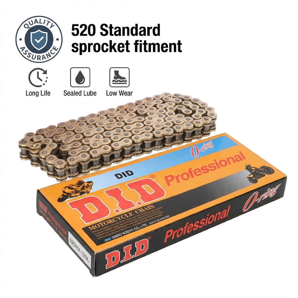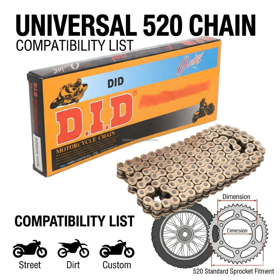 JFG Catena Moto O-Ring 520HV 120L Ad Alte Prestazioni Resistente Dorata Ricambi Trasmissione Universale per Moto da Cross