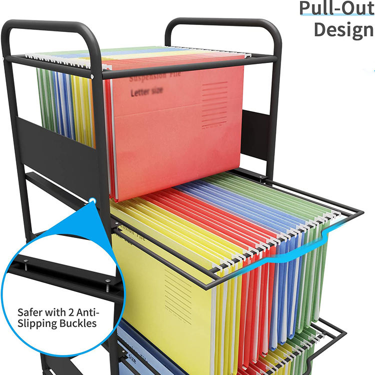 Carrello Portadocumenti JH-Mech con Ruote, per Cartelle Formato Lettera, 3 Ripiani, Carrello Metallico Mobile per Ufficio