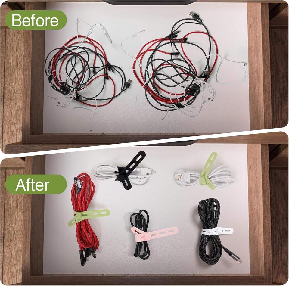 JIAEN 24 pezzi in Silicone fascette per cavi riutilizzabili lavabili con chiusura a fibbia Design Organizer cinghie di fissaggio regolabili