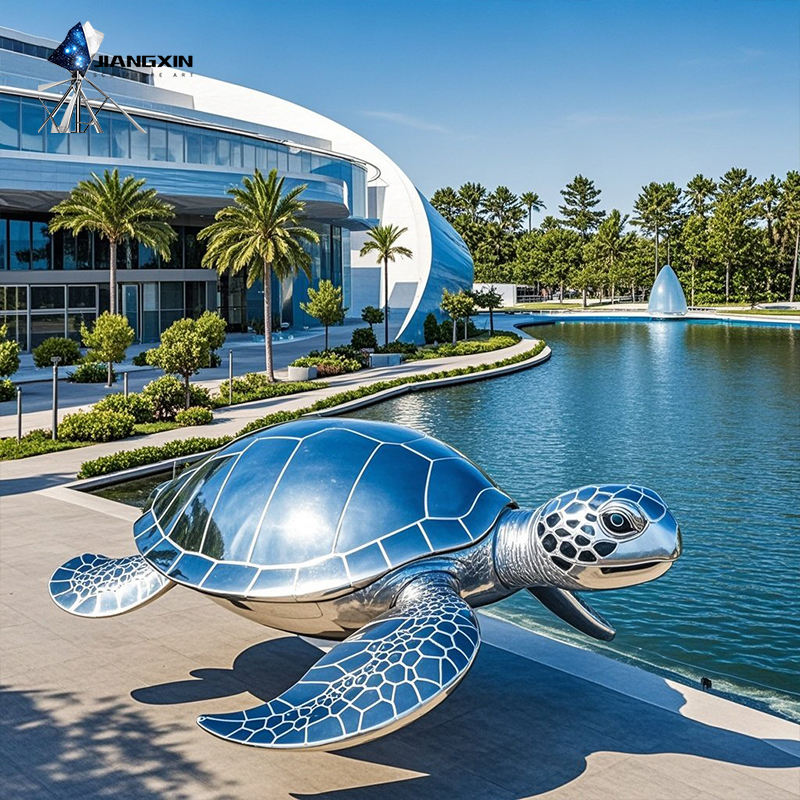 JIANGXIN Solar-Tech Turtle Sculpture - Self-Cleaning Mirror Steel & Night Glow 24K Gold Accents & Geometric Motifs for Palaces