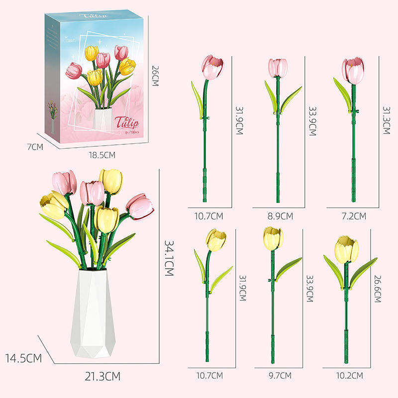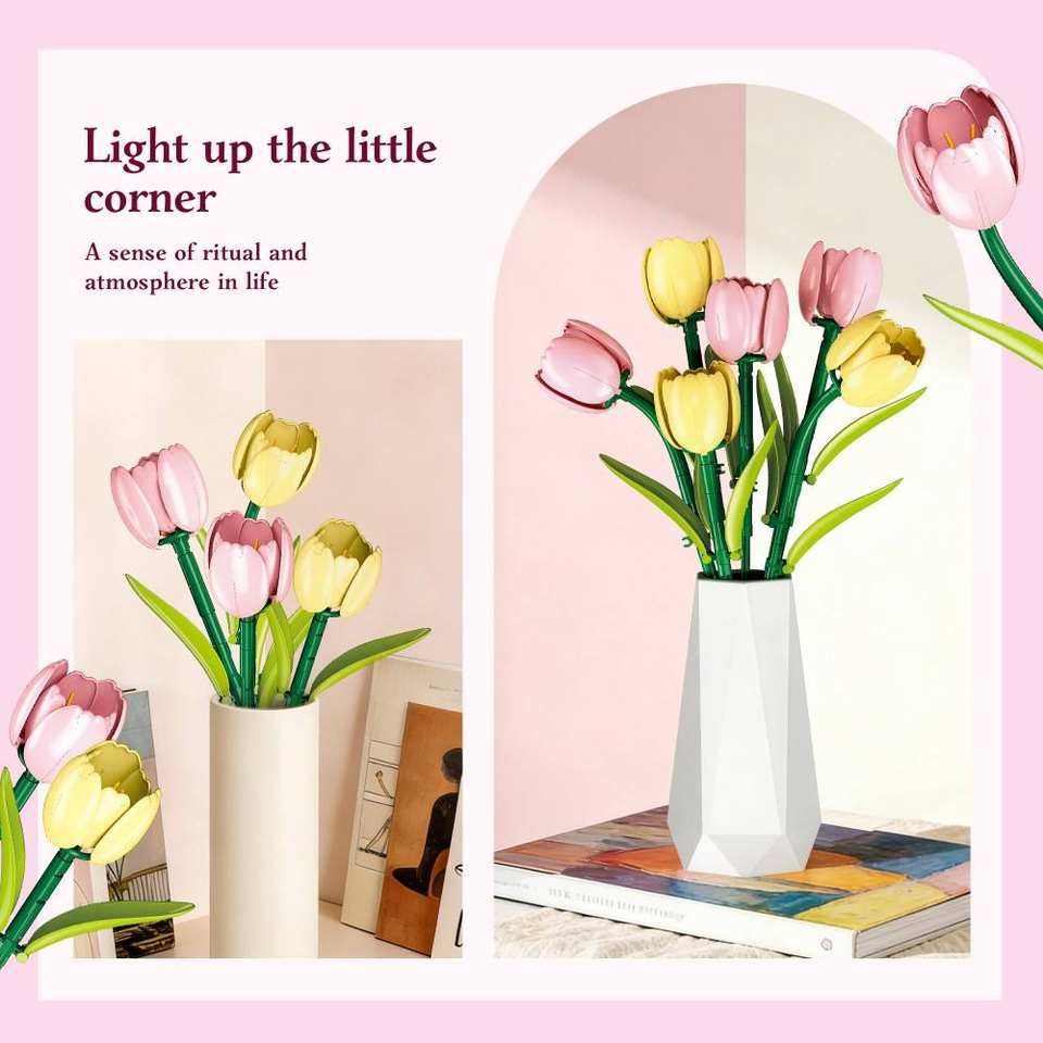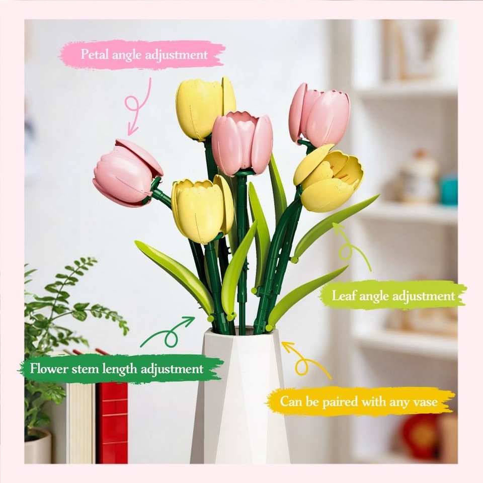 JIESTAR Puzzle 3D Creativo, Set di Costruzioni per Bouquet di Tulipani Artificiali in Vaso, Decorazione Casa, Regalo di San Valentino
