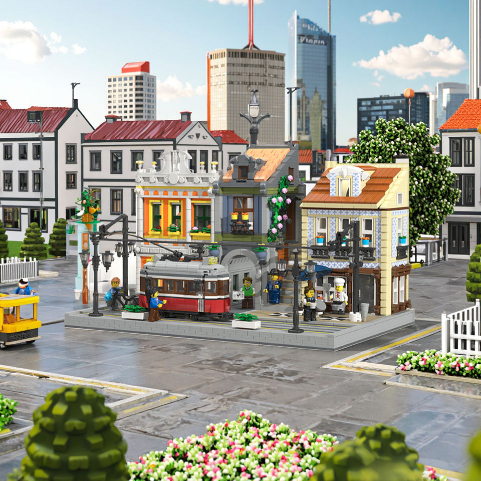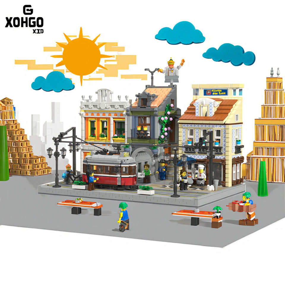 JIESTAR TOYS 3080 Pcs Educational Plastic Building Blocks Two-Story European Lisbon Tram Station Model Kids Street View Toy