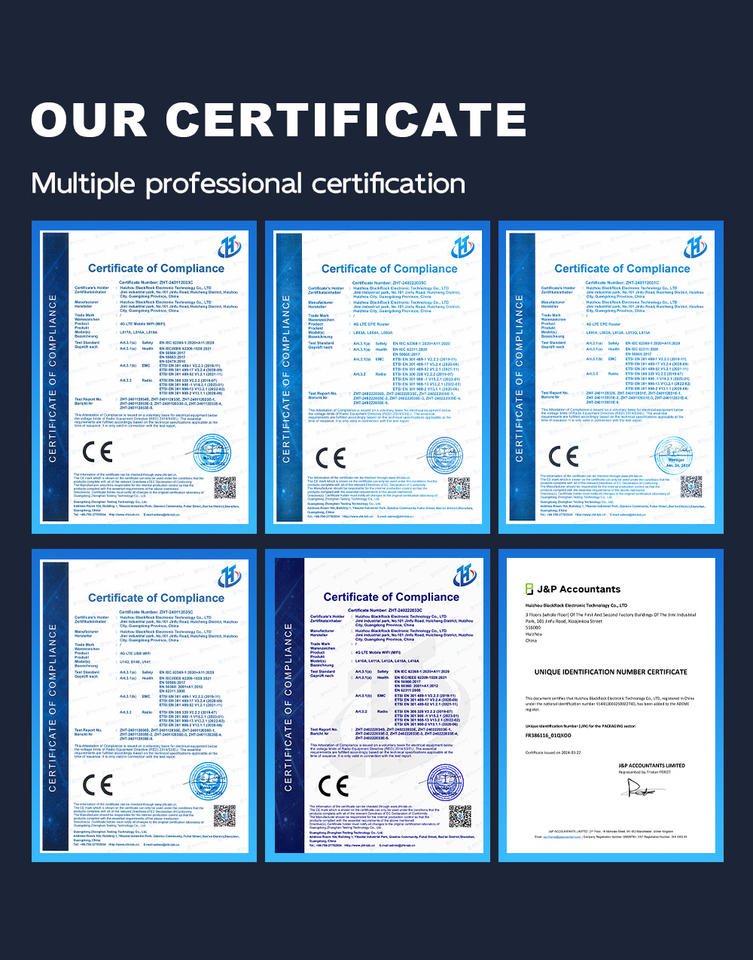 LTE CAT4 FDD-LTE: Offre velocità di download fino a 300 Mbps e velocità di upload fino a 230 Mbps, garantendo un trasferimento di dati efficiente.
