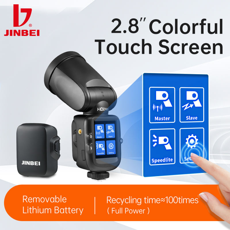 JINBEI HD-2 MAX Tap Screen Round Head Portable Speedlite Battery Camera Flash Lights for All Camera Brands Outdoor Shooting