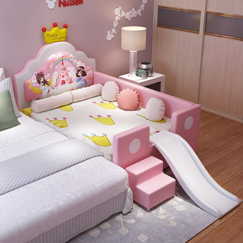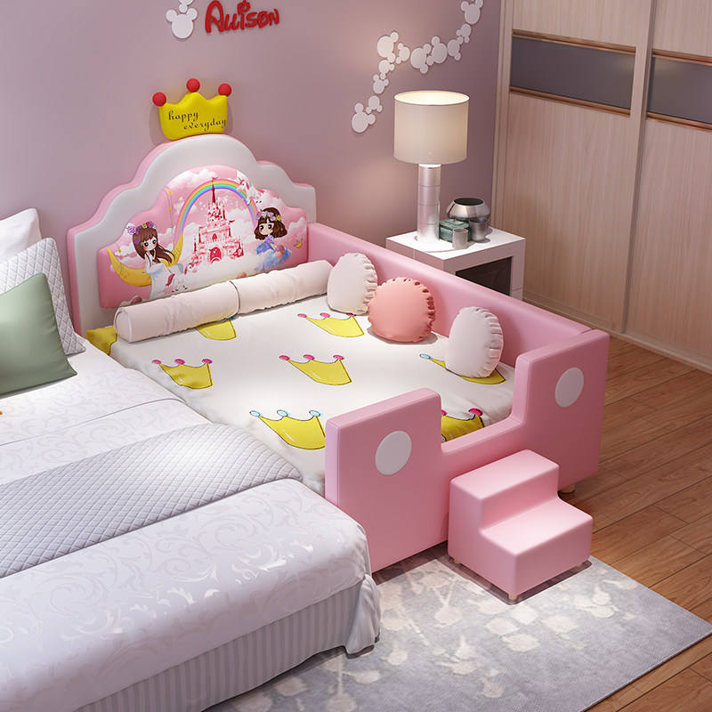 Lettino per Bambini JINS in Legno Massello con Sponda di Sicurezza, Combinazione di Letti in Pelle, Paracolpi Piccolo per Culla