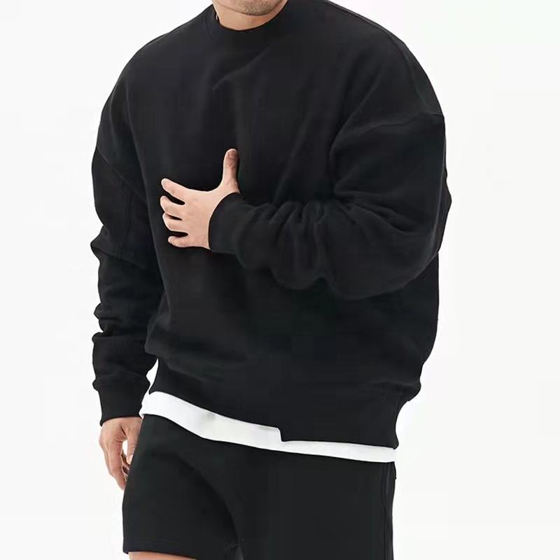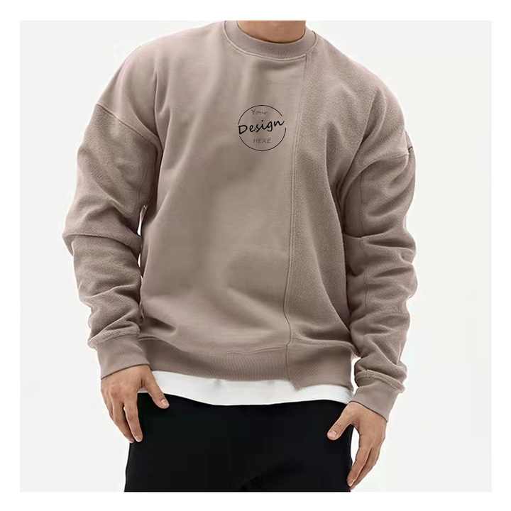 Felpa a girocollo JL-11112 personalizzata da uomo Oversize con combinazione di colore bianco a tracolla marrone felpe a girocollo