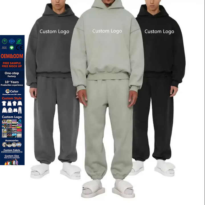 JL0907A Tuta Sportiva a Gamba Dritta Senza Cordoncini per Uomo, Set di Alta Qualità con Pantaloni Jogger Pesanti e Felpa con Cappuccio