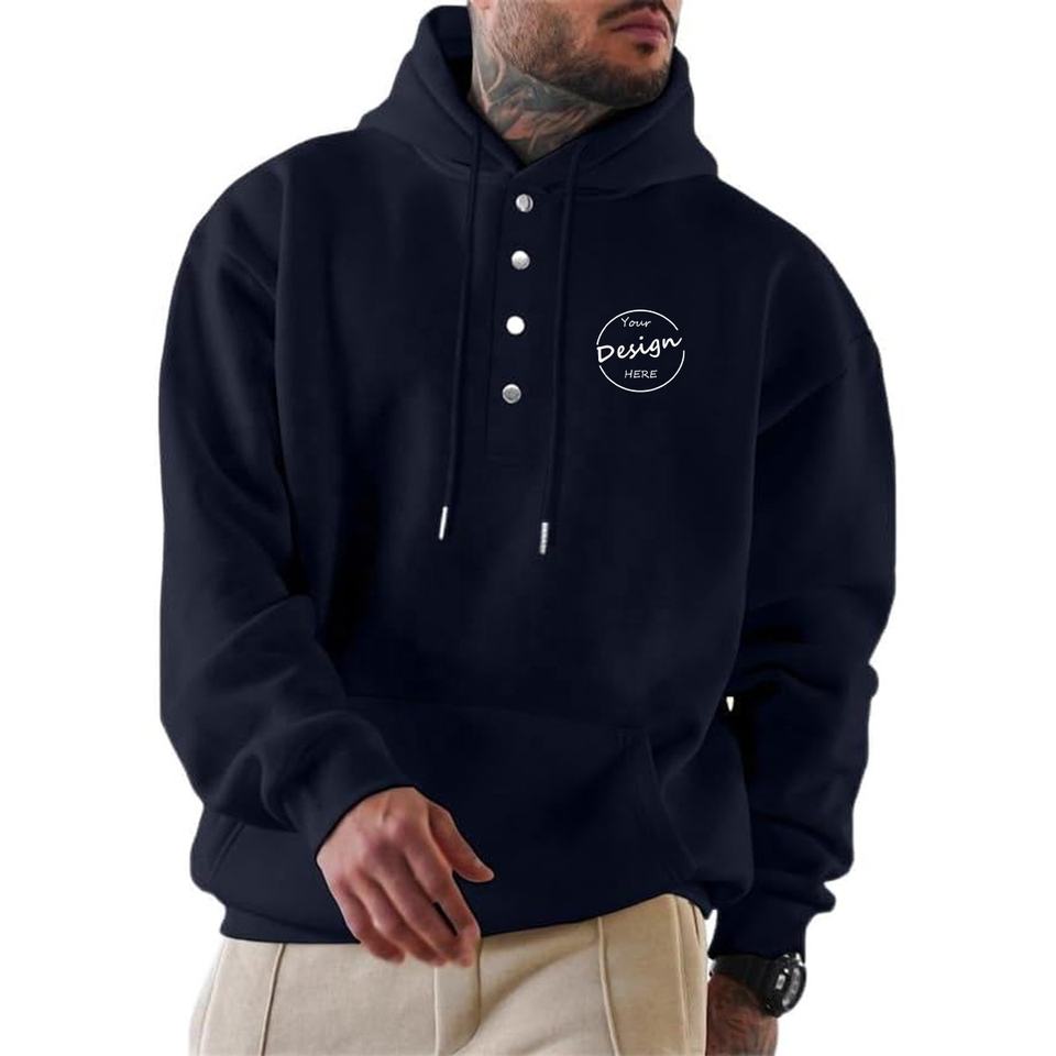 Felpa con Cappuccio JL927A Senza Cordoncini, Pullover di Qualità in Cotone Spesso, Felpa con Tasca a Marsupio e Bottoni a Pressione per Uomo