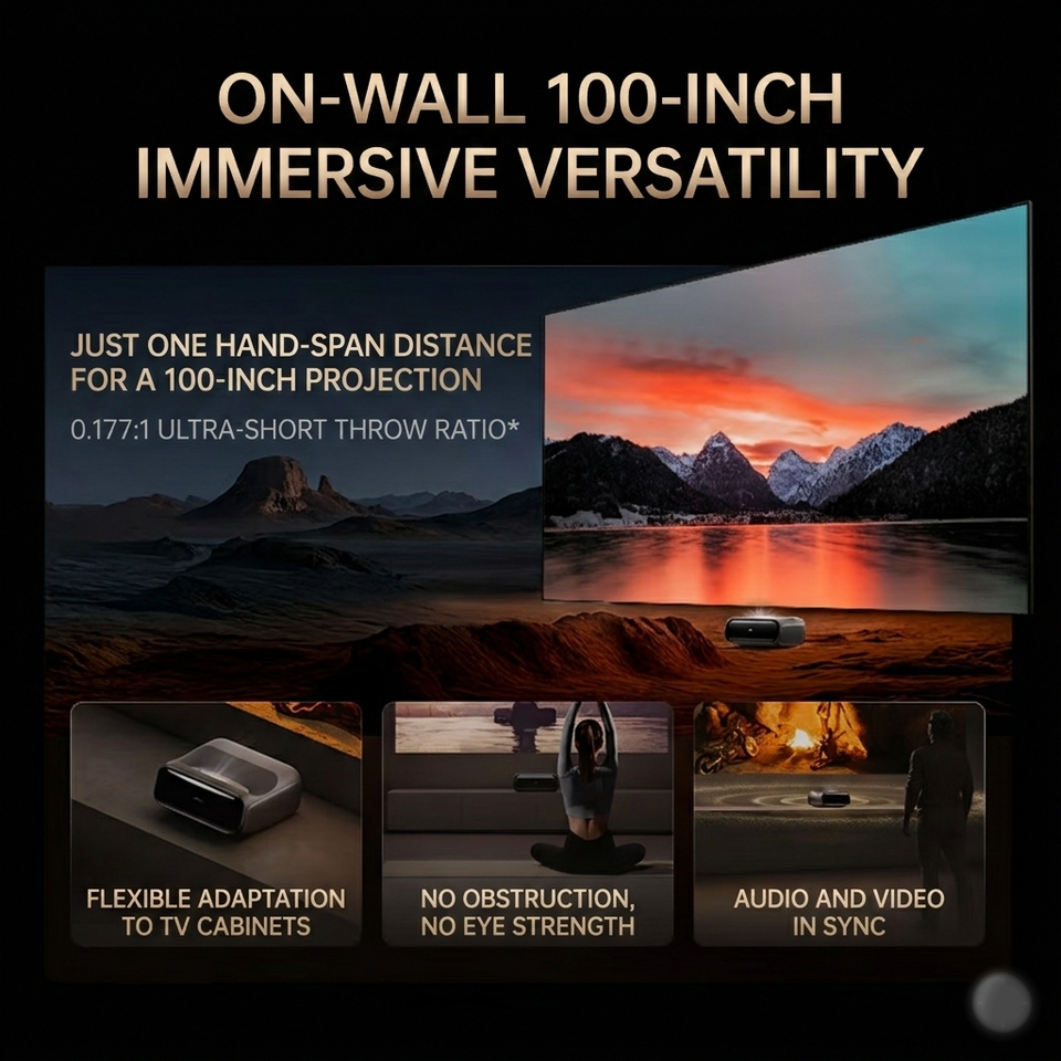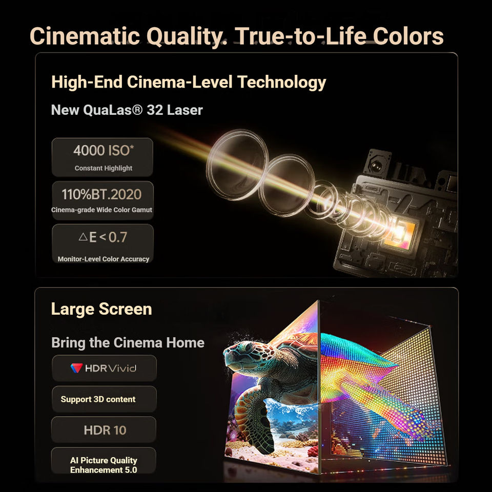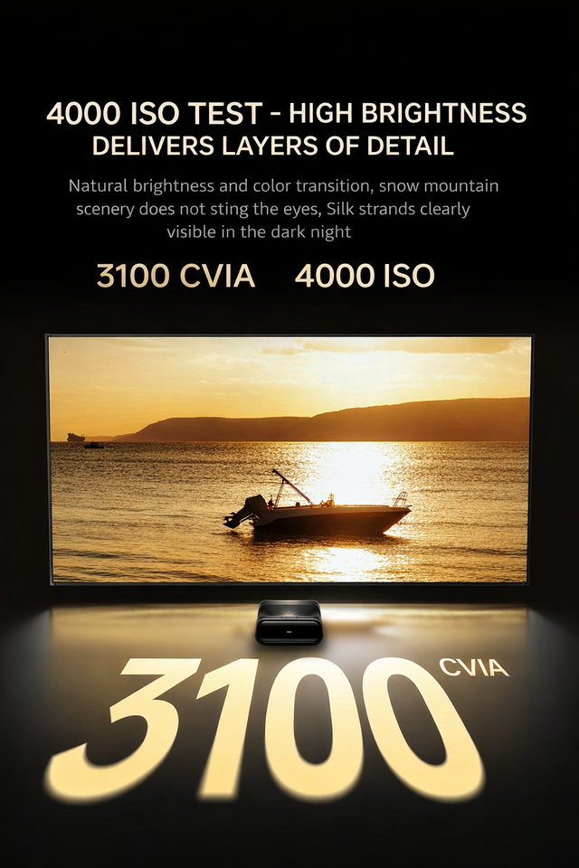 Proiettore Laser JMGO O3 Ultra 4K Ultra HD a Tiro Ultra Corto per Home Cinema, 3100 Lumen CVIA, Proiettore Smart Integrato