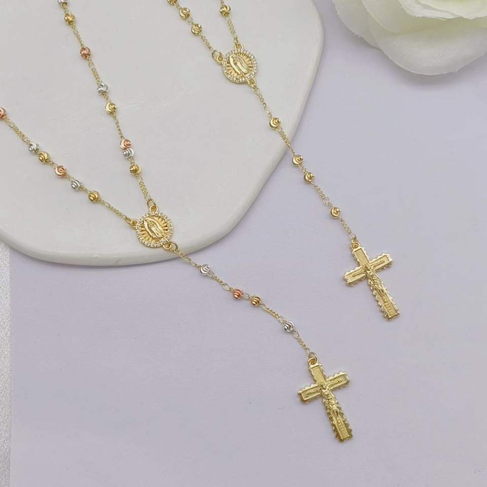JML oro rosa rosario religioso 14k collana croce all'ingrosso laminato oro Tri colore Saint Jude benedetto gesus Mary gioielli uomini
