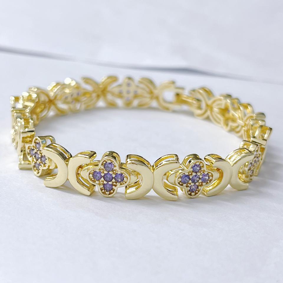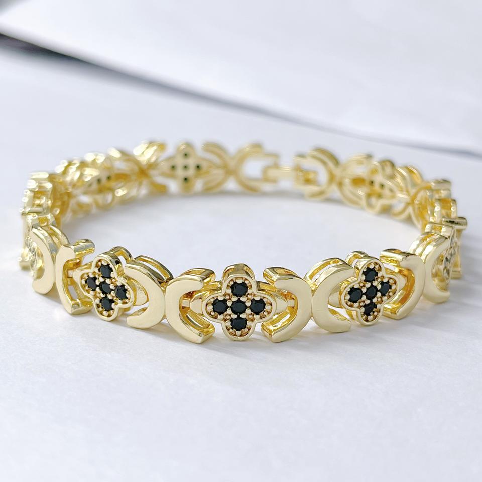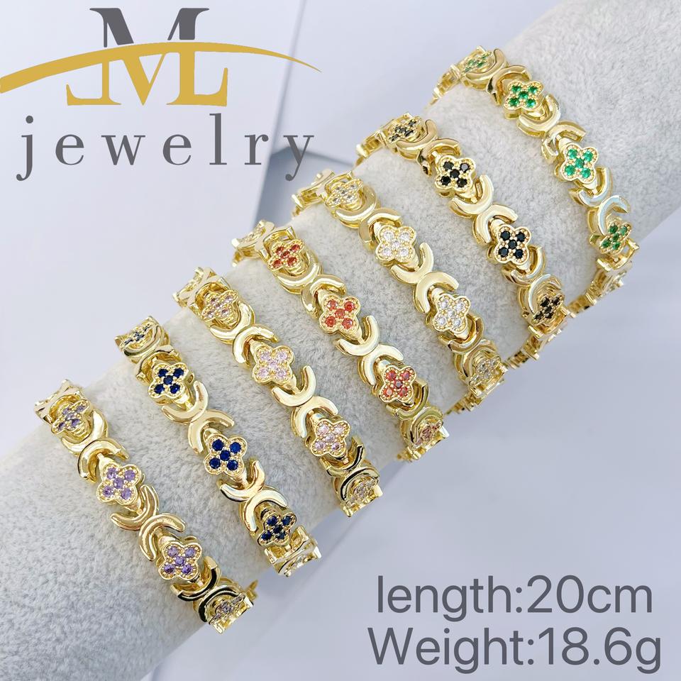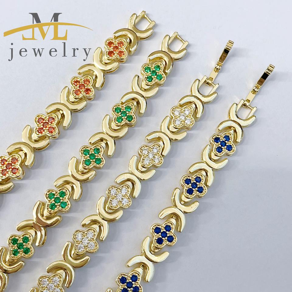 Bracciale JML di Alta Qualità in Oro Laminato 14k, Accessorio di Moda con Zirconi a Forma di Cuore, Design Trendy con Fiori