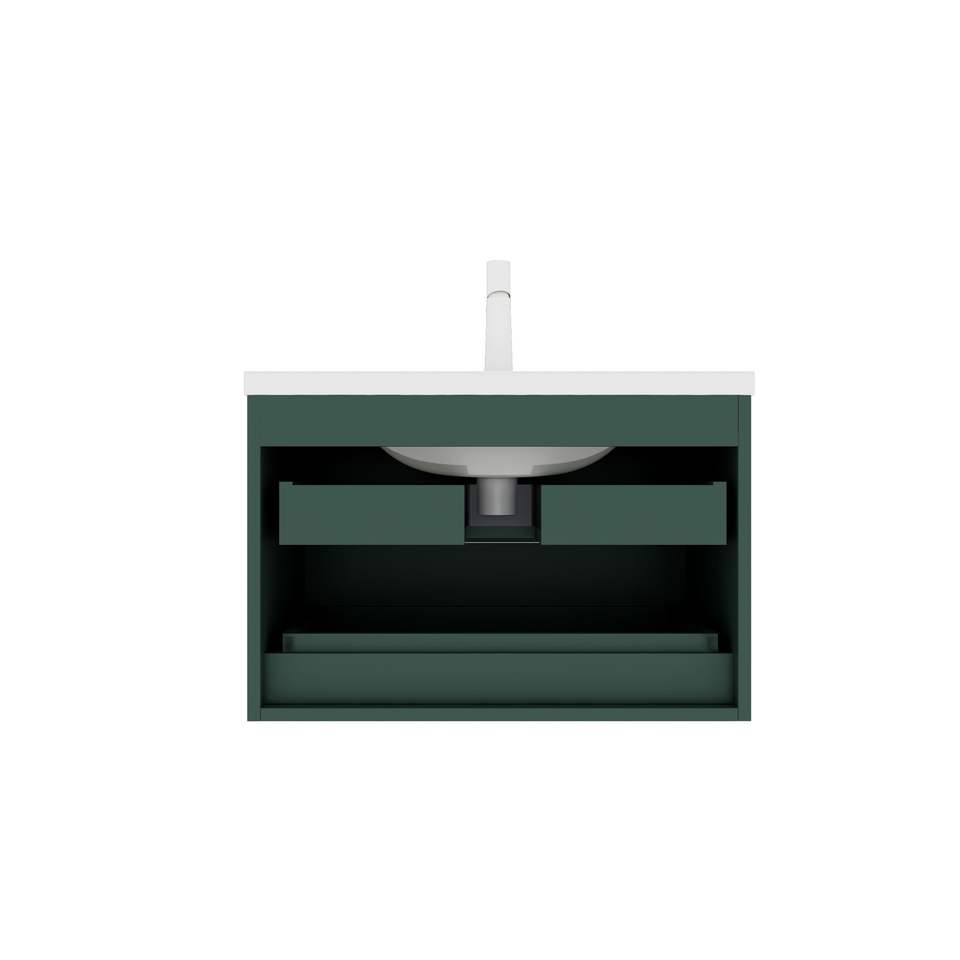Mobile bagno sospeso moderno JODI da 30 pollici con 2 cassetti, lavabo in ceramica bianca e luci a pannello bianche