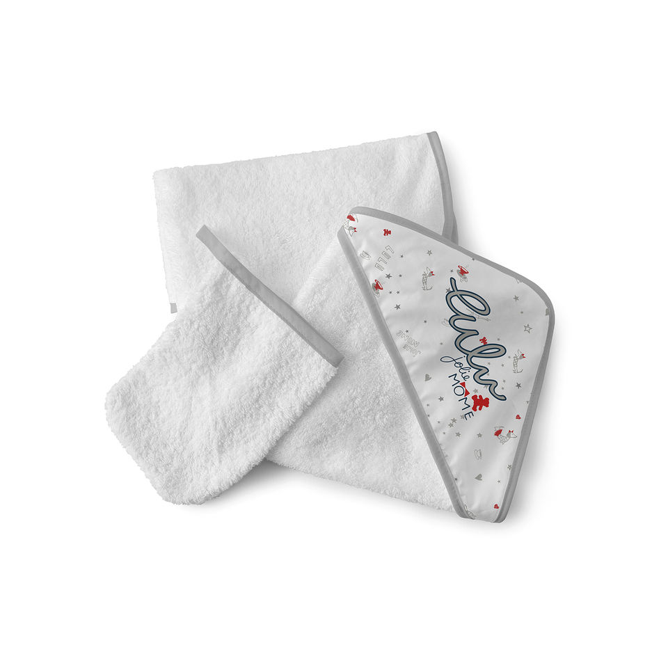 JOLIE MOME Gris Baby Bath Towel with Hood + Gloves 75x75 Square Embroidered Cartoon Pattern Coral Fleece for Kids Care