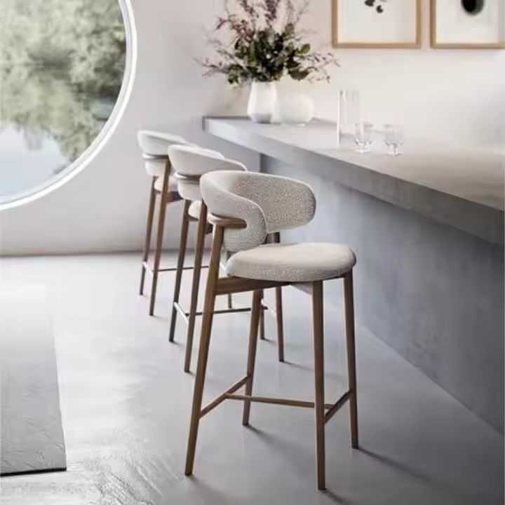 Sgabello da Bar Moderno in Legno Massello JP con Poggiapiedi in Tessuto, Ideale per Casa, Sala da Pranzo, Parco, Palestra, Bagno, Scuola e Centri Commerciali