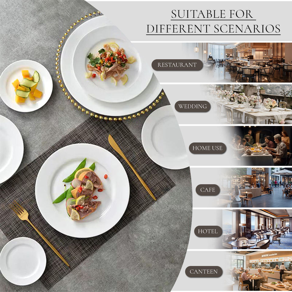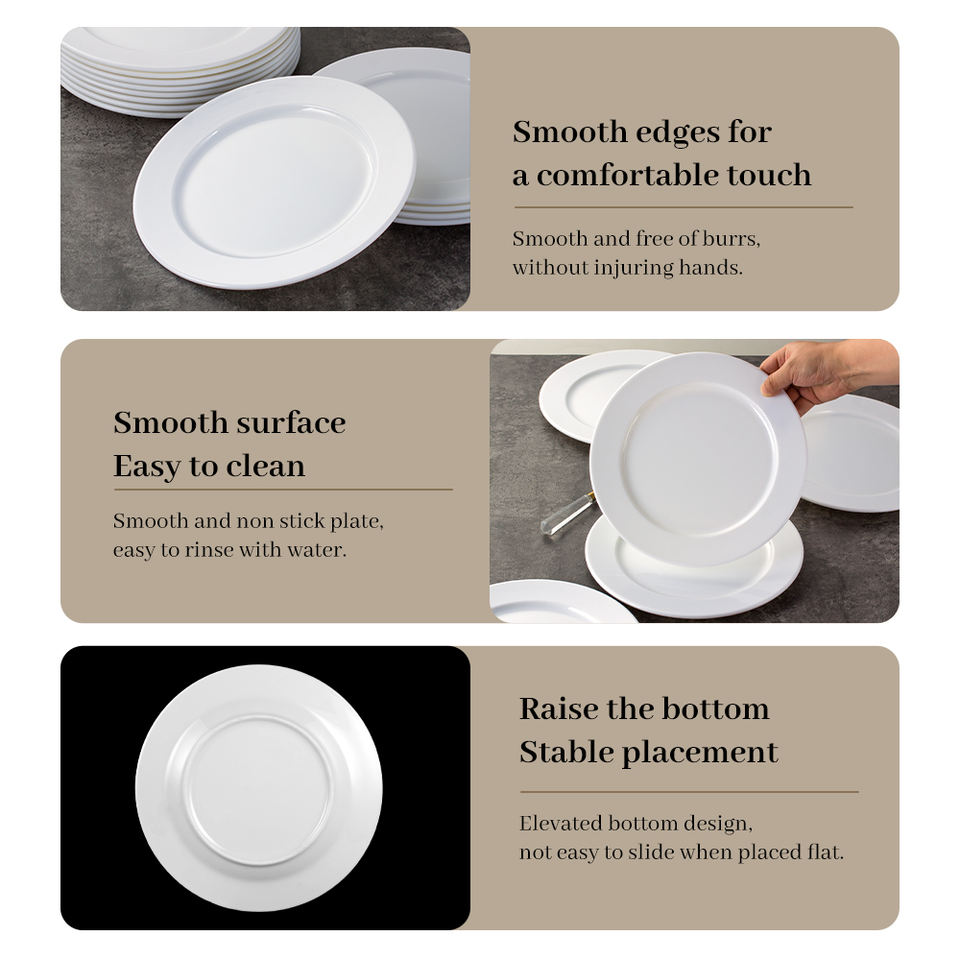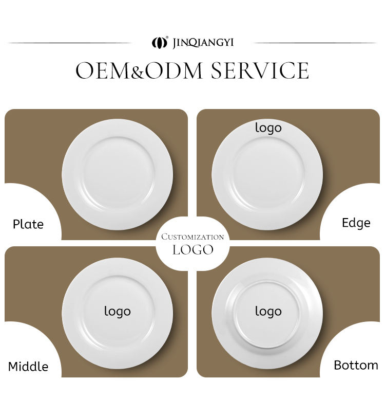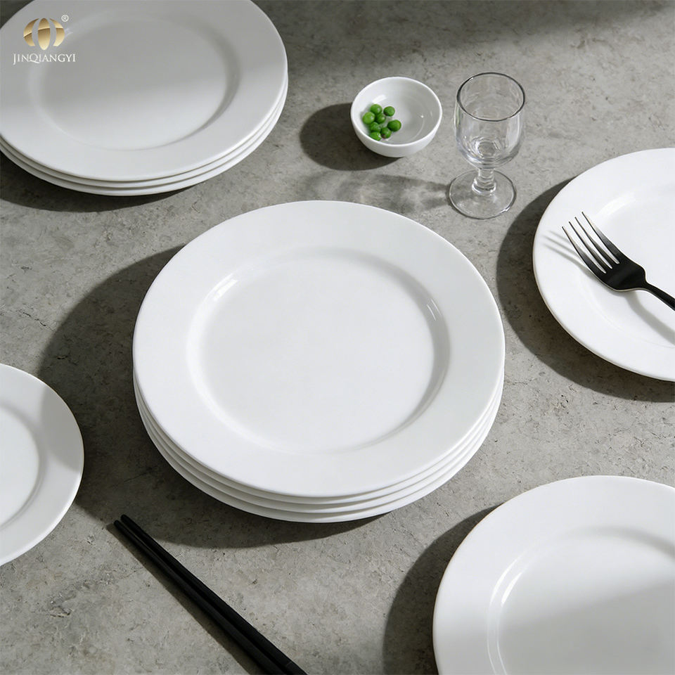 Piatti Bianchi Semplici JQY per Ristoranti e Buffet, 5-14 Pollici, Logo Personalizzabile, Stoviglie in Melamina Infrangibili