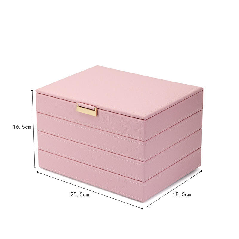 Scatola Portagioie JS in Pelle Rosa con Adesivi, Grande Capacità, Organizer Decorativo Impilabile, Design 25.5x18.5x16.5CM