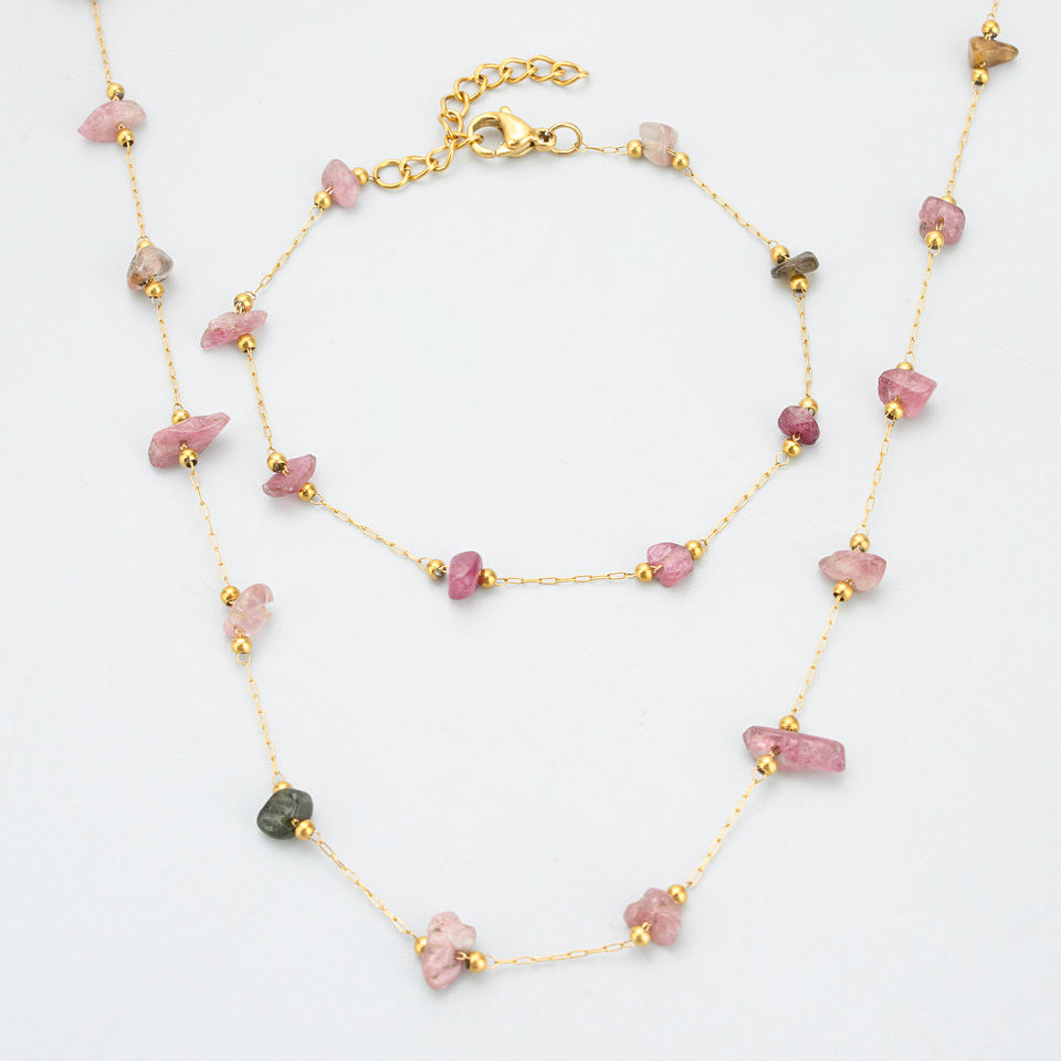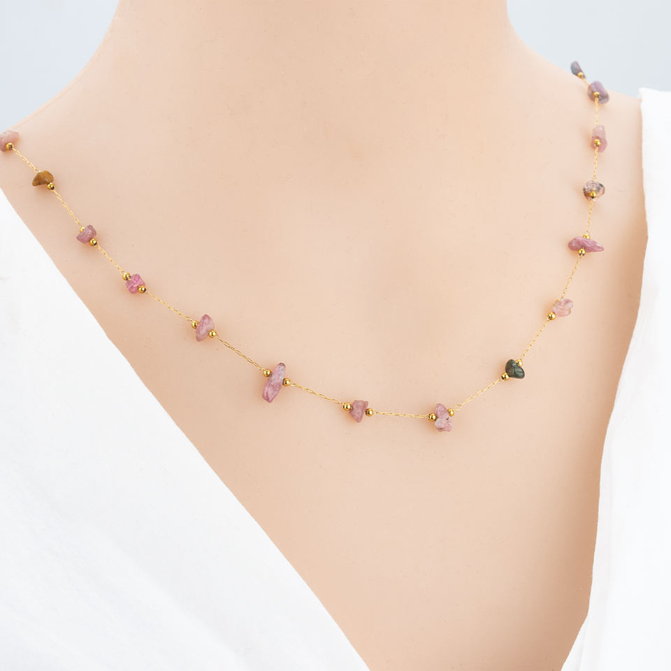 JS14 Set all'Ingrosso di Collane Artigianali in Acciaio Inox con Perline, Gioielli da Donna alla Moda con Pietre Naturali, Nickel Free, Un Lotto Un Pezzo