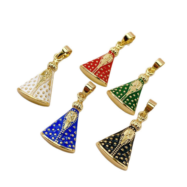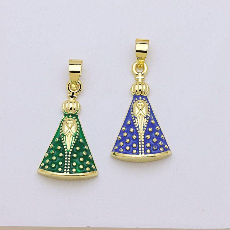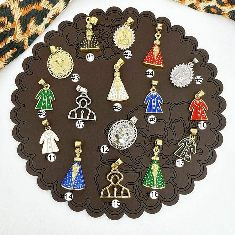 Ciondoli JS2031 Placcati Oro 18k con Zirconi Cubici, Raffiguranti Gesù Malverde e la Vergine del Valle