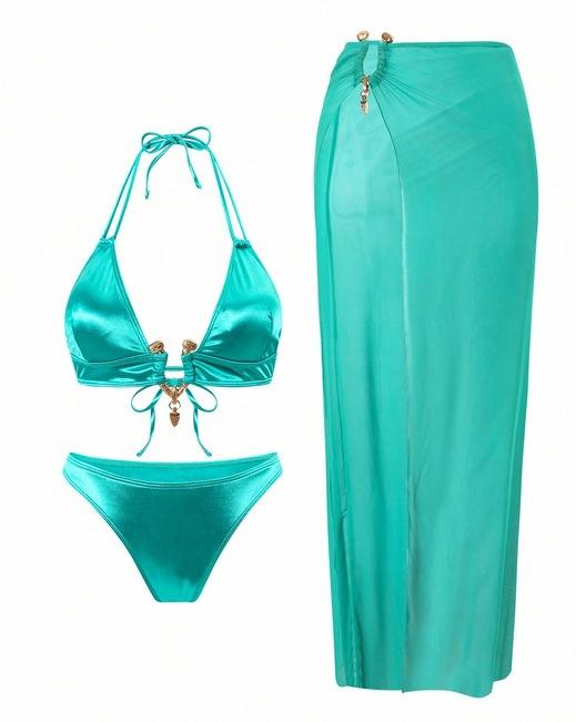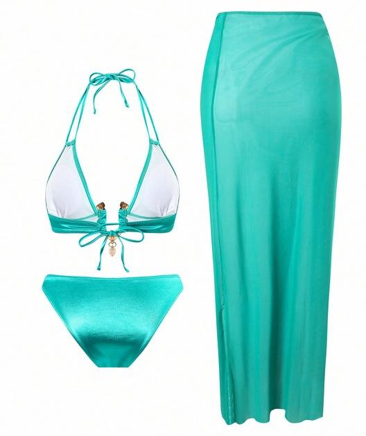 JSN 2026 Nuovo Design Bikini Due Pezzi con Copricostume per Signore, Costume da Bagno Donna Tinta Unita con Allacciatura al Collo e Schiena Scoperta di Alta Qualità