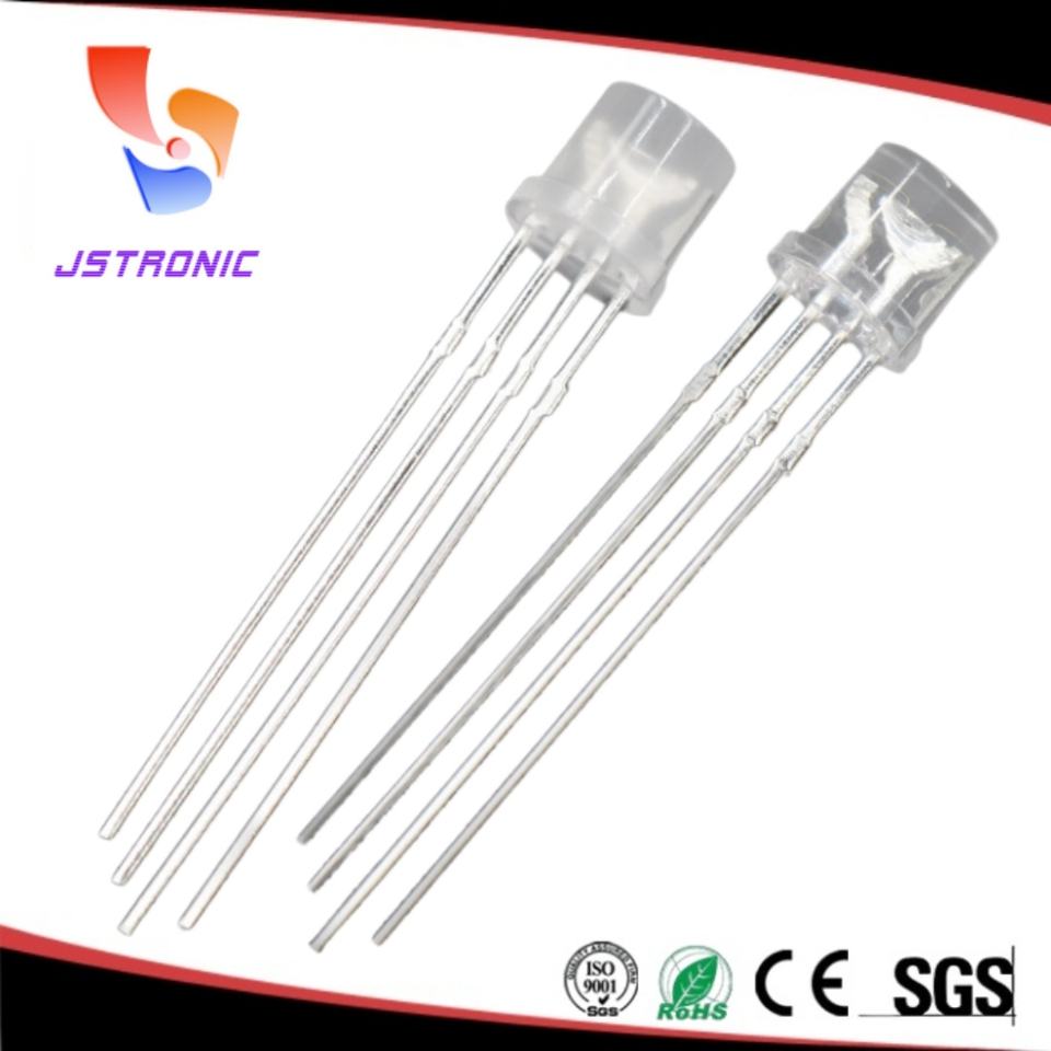JSTRONIC 4 Pins LED Diodes 5mm 8mm 10mm Flat Top Rgb Led Common Anode Cathode Light Bulb Clear Diffused Lens