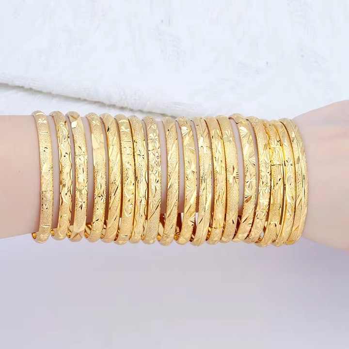 Bracciale Rigido Largo JXX con Design Inciso, Placcato in Oro 24k, Gioielli 2025 per Donna, Vendita all'Ingrosso