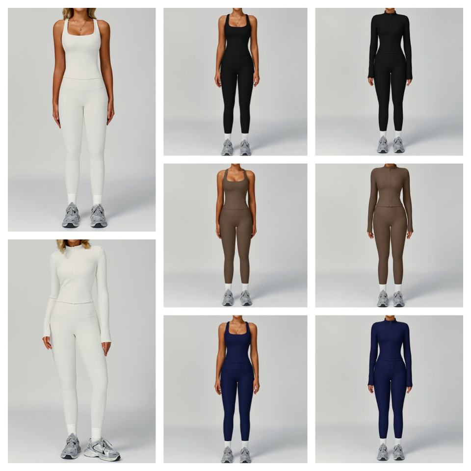 JY-3093 2025 Wholesale Gym Fitness Ribbed Long Sleeve Jacket Leggings Sports Suits Women Seamless Fitness Yoga Set