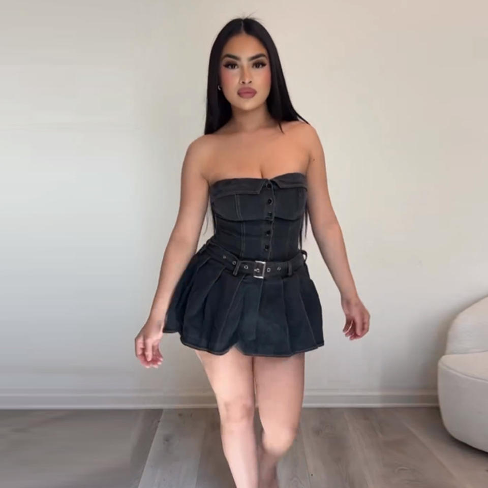 JY Hot Sale Summer Women's Denim Dress Belt Sexy Pleated Strapless Jeans Dress Plus Size Denim Dress for Lady Woman