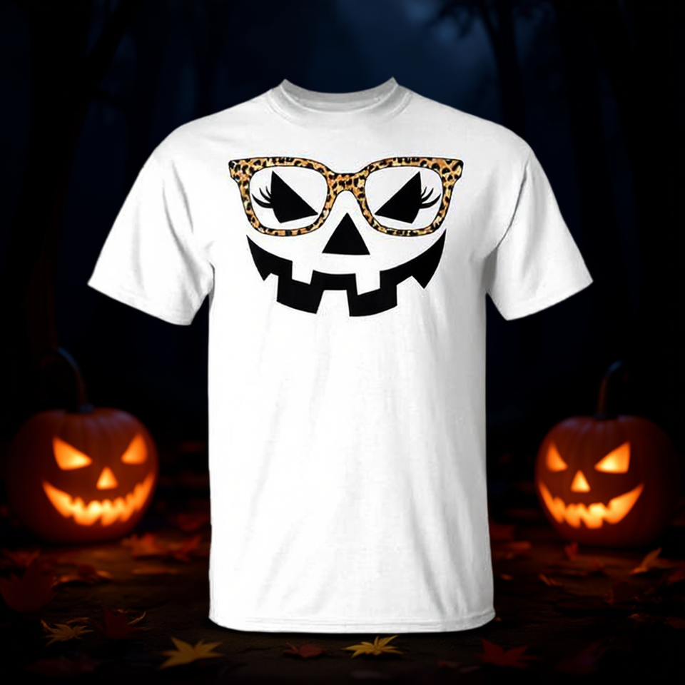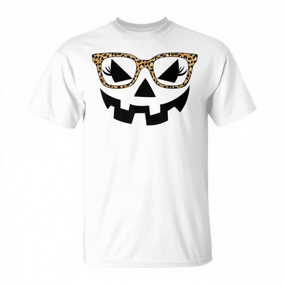 T-shirt con stampa leopardata di Jack O Lantern Face Pumpkin Halloween