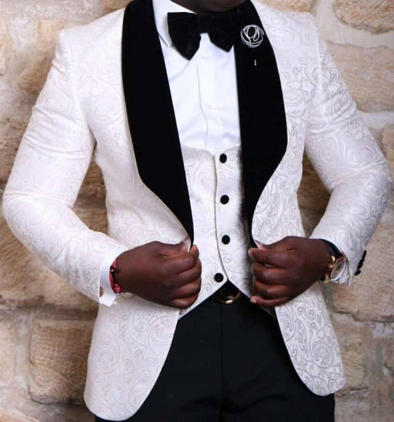 (Jacket+Pants+Tie+Vest) New Style Groomsmen Shawl Lapel Groom Tuxedos Red/White/Black Men Suits Wedding Best Man Blazer
