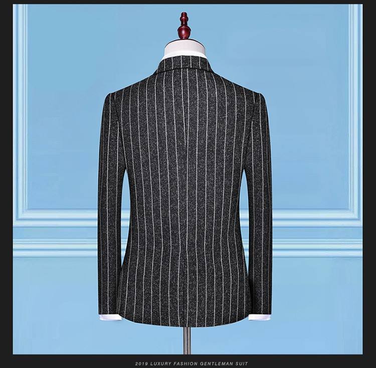 (Jackets+Vest+Pants) Male Blazers Slim British Business Suits Men Dress 3 Pieces Wedding Bridegroom Man Stripe Suit