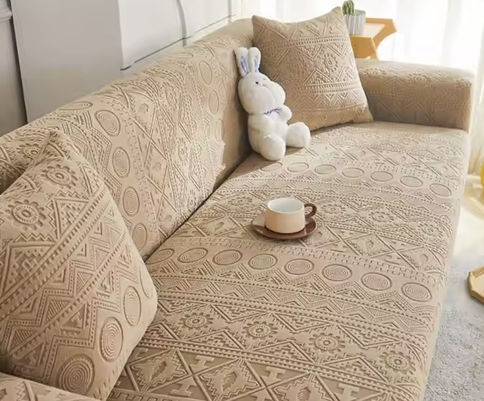 Copridivano Jacquard Antigraffio con Motivo Geometrico Boemo, Fodera Integrale Universale per Poltrona e Cuscino Quattro Stagioni