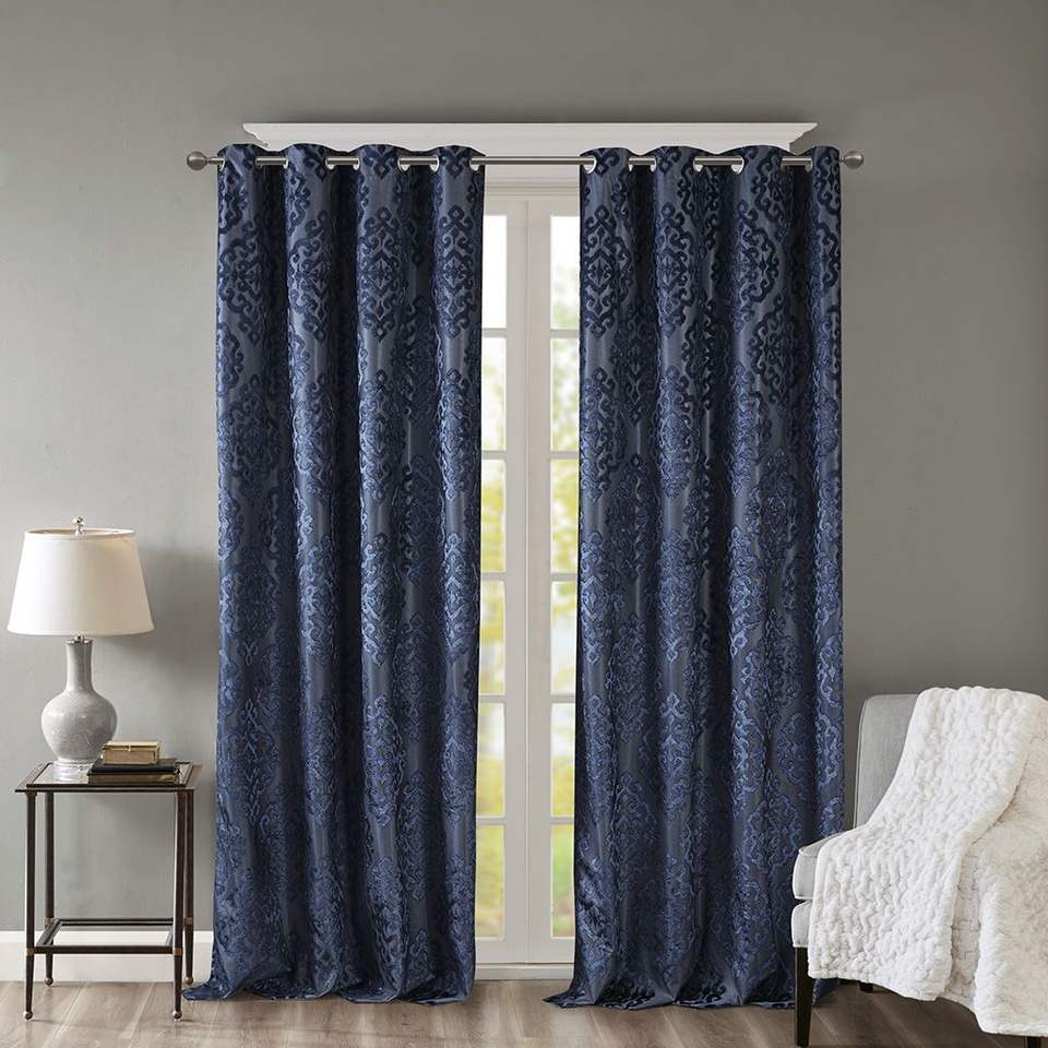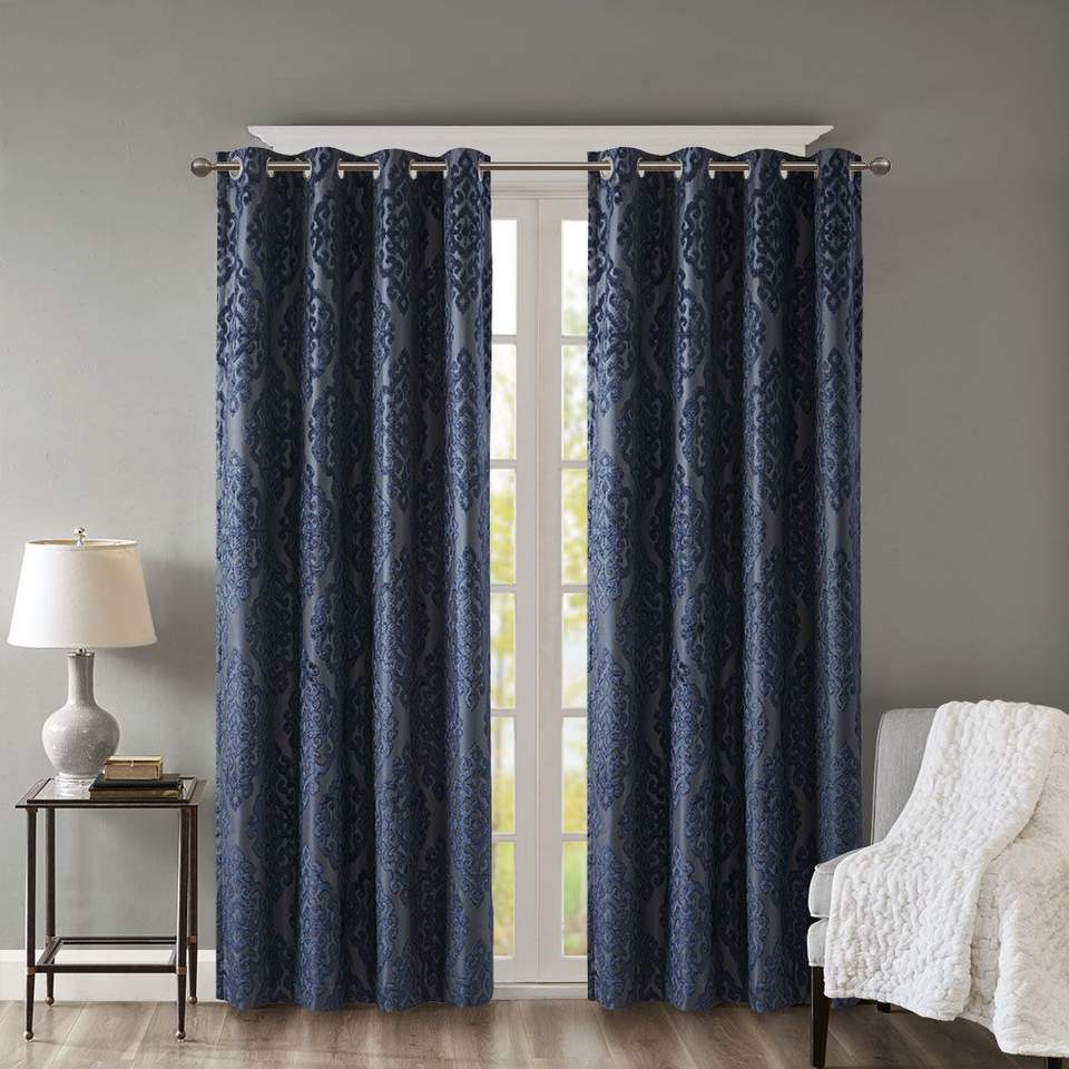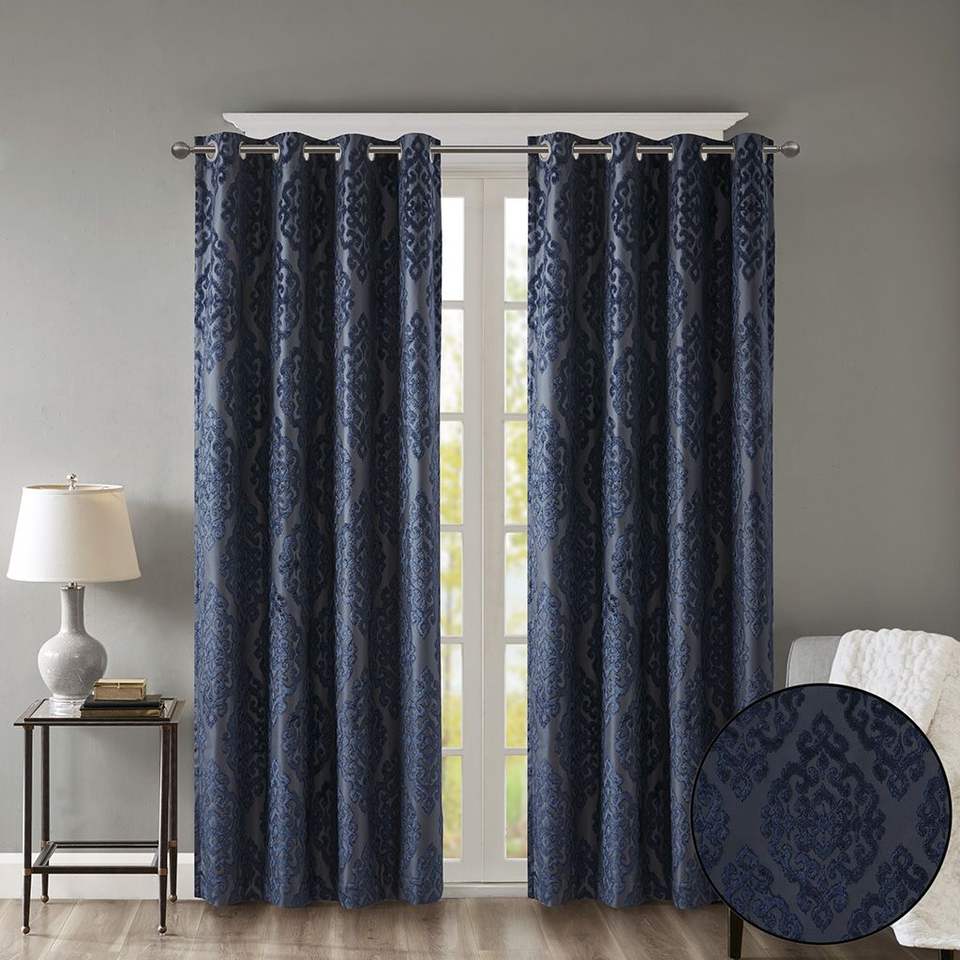 Jacquard Damask Knitted Total Blackout Grommet Top Curtain Panel Single Piece Only
