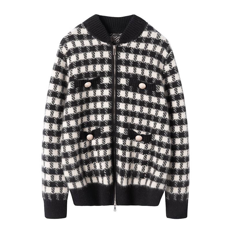 Maglieria di Design Jacquard vestito da ragazza vestito da donna Set di due pezzi pied de poule top gonna a vita alta Cardigan maglione 2 pezzi Set