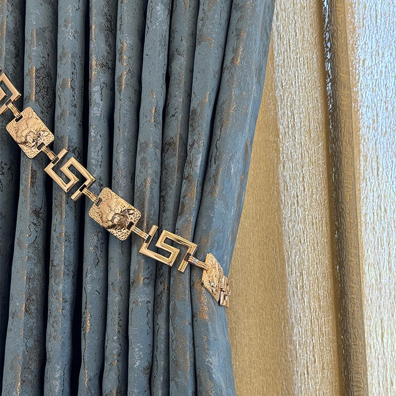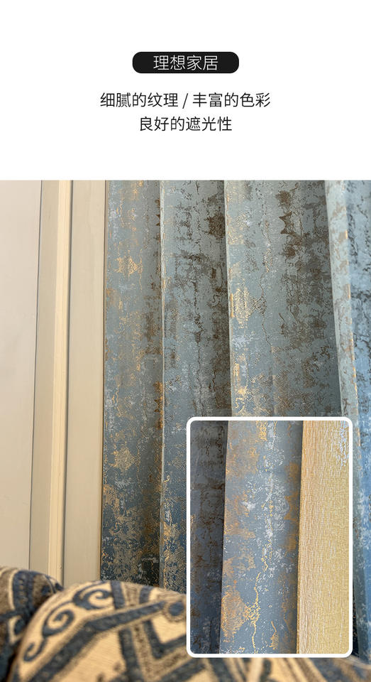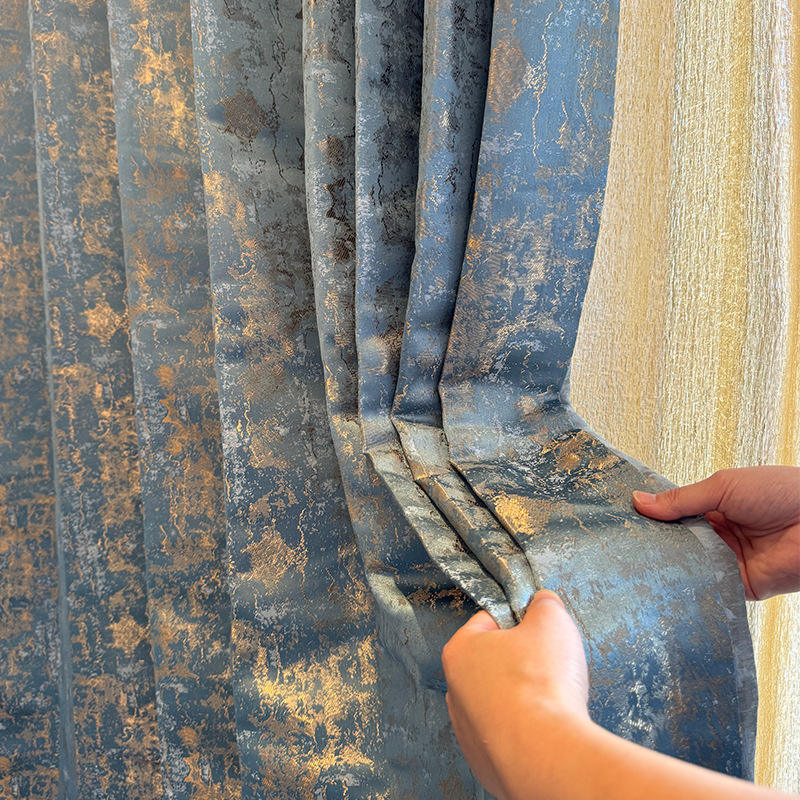 Jacquard Luxury Fabric Blue Gold Marbled Sand Release Pillow Chair Cover Luxury Curtains for Living Room Bedroom