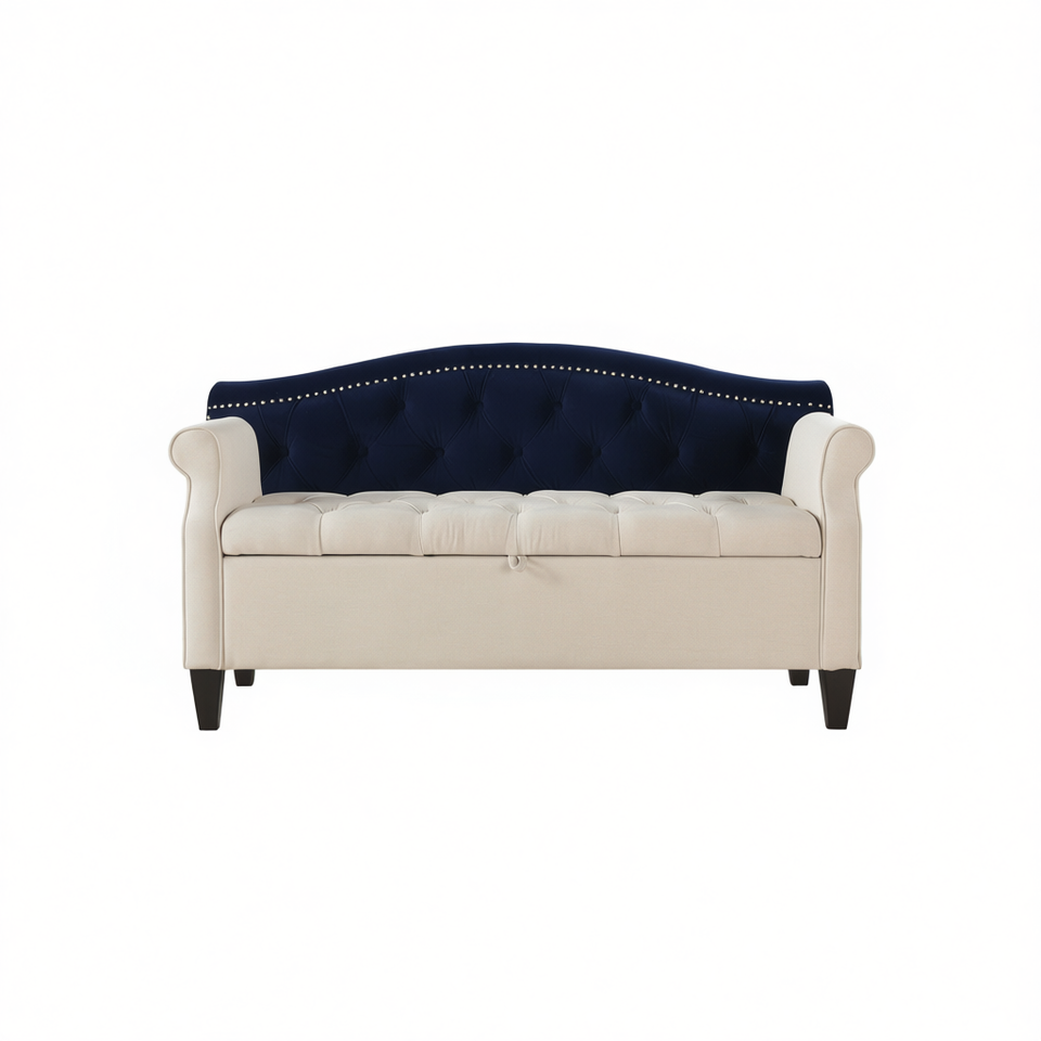 Panca contenitore Jacquelin con braccioli a rullo e trapuntatura, 57,5 pollici, in poliestere beige neutro cielo, per camera da letto